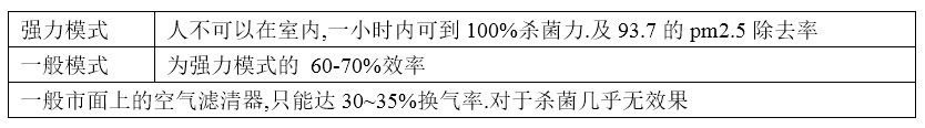 进风口(CFU/m^3)185 出风口 0 (CFU/m^3) 瞬时去除 100%效率